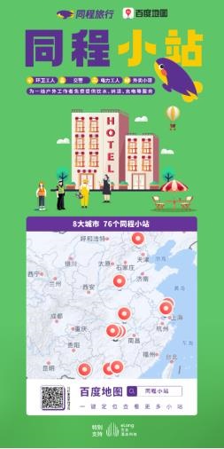 目前,首批“同程小站”覆盖了北京、广州、武汉、长沙、南宁、苏州等8个城市的76家酒店。同程旅行联合百度地图推出“同程小站”专题地图,有需要的用户通过百度地图搜索“同程小站”,即可一键查看附近小站,并前往休息,百度地图同时对提供小站服务的酒店进行了信息标注。已开通“同程小站”服务的酒店,会为他们提供公共休息区、免费茶水、充电等服务。