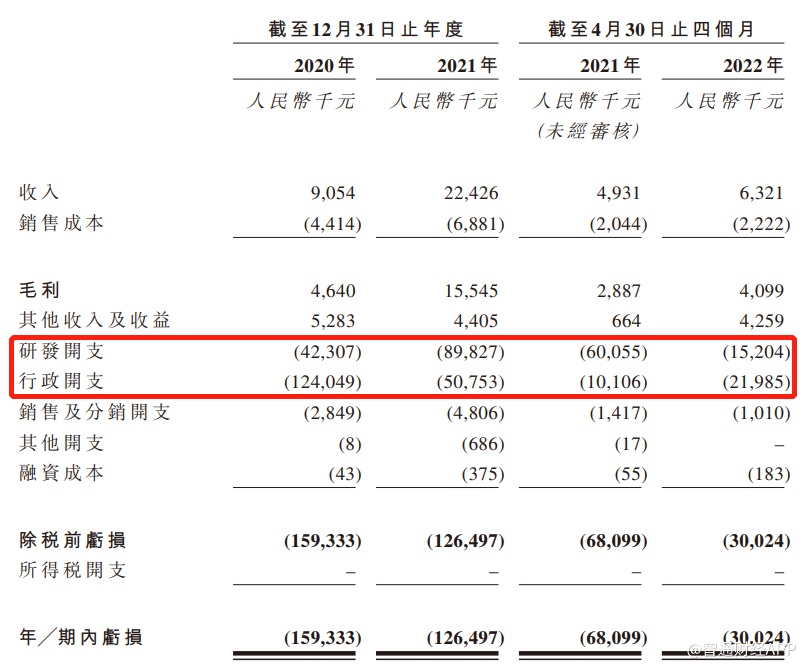 由于未来发展在很大程度上取决于能否成功开发在研产品以实现商业化,因此研发费用从2020年的4230.7万元大幅增长至2021年的8982.7万元;而随着行政费用从2020年的1.24亿元大幅减至2021年的5075.3万元,公司净亏损也在进一步缩小。