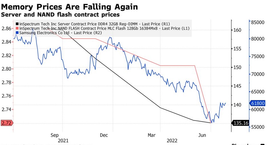 彭博BI分析师Masahiro Wakasugi称:“三星电子DRAM合约价格从4月份开始连续小幅下降,5月份持平,6月份略有下降。DRAM的月出口额从2021年7月开始一直稳定在35亿美元左右,预计今年7月以后的增长率将进一步下降。”