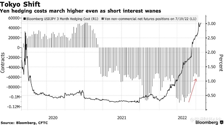 美国商品期货交易委员会的数据显示,投机者此前一直在削减对日元的看跌押注,截至6月底,非商业机构的净空头头寸降至今年最低水平。但大量空头仍然存在,继续推高对冲成本,原因是投资者仍对日元是否会跌破备受关注的140关口争论不休。