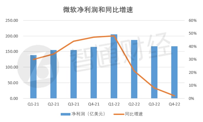 财报显示,微软第四季度净利润167.4亿美元,同比增长2%,低于该公司6月下调盈利指引后的168.5亿美元-174.3亿美元区间,同样也是近两年增速新低;摊薄后每股收益为2.23美元,低于分析师预期的2.29美元,这是微软每股收益自2016年以来首次低于市场预期。