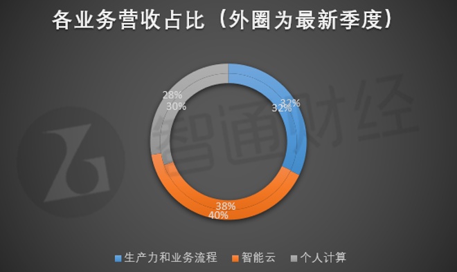 除了核心的企业 Office 业务外,生产力与商务流程板块内的其他业务基本呈现了类似的营收放缓幅度。