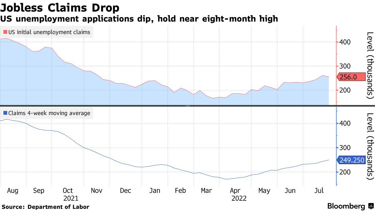 智通财经APP获悉,美国劳工部周四公布的数据显示,截至7月23日当周,美国初次申请失业金人数减少5,000人,至25.6万人。彭博社对经济学家进行的调查显示,申请人数的中位数预期25万人。截至7月16日当周,续请失业金人数降至136万人。虽然美国失业金申请人数四周来首次下降,但仍维持在去年11月以来最高水平附近,表明劳动力市场继续放缓。