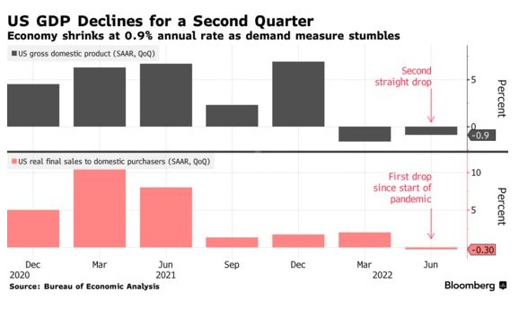 智通财经APP注意到,在美国经济连续第二个季度下降后,经济衰退的鼓声越来越响亮,因为几十年来的高通胀削弱了消费者支出,而美联储加息阻碍了企业和住房贷款。