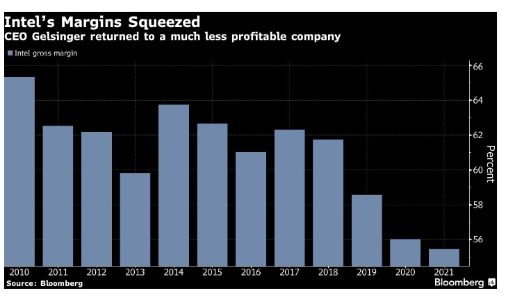根据英特尔去年的一项战略,该公司励志回到半导体行业的领导地位,并向新市场拓展。这一举措将大规模增加英特尔在制造工厂和设备上的支出,但投资者最近关于这一计划可能耗费的成本以及时间的担忧升级了。