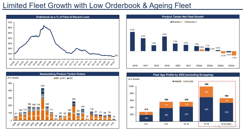 供给端方面,船队运力增长缓慢可能会支撑油轮运价。