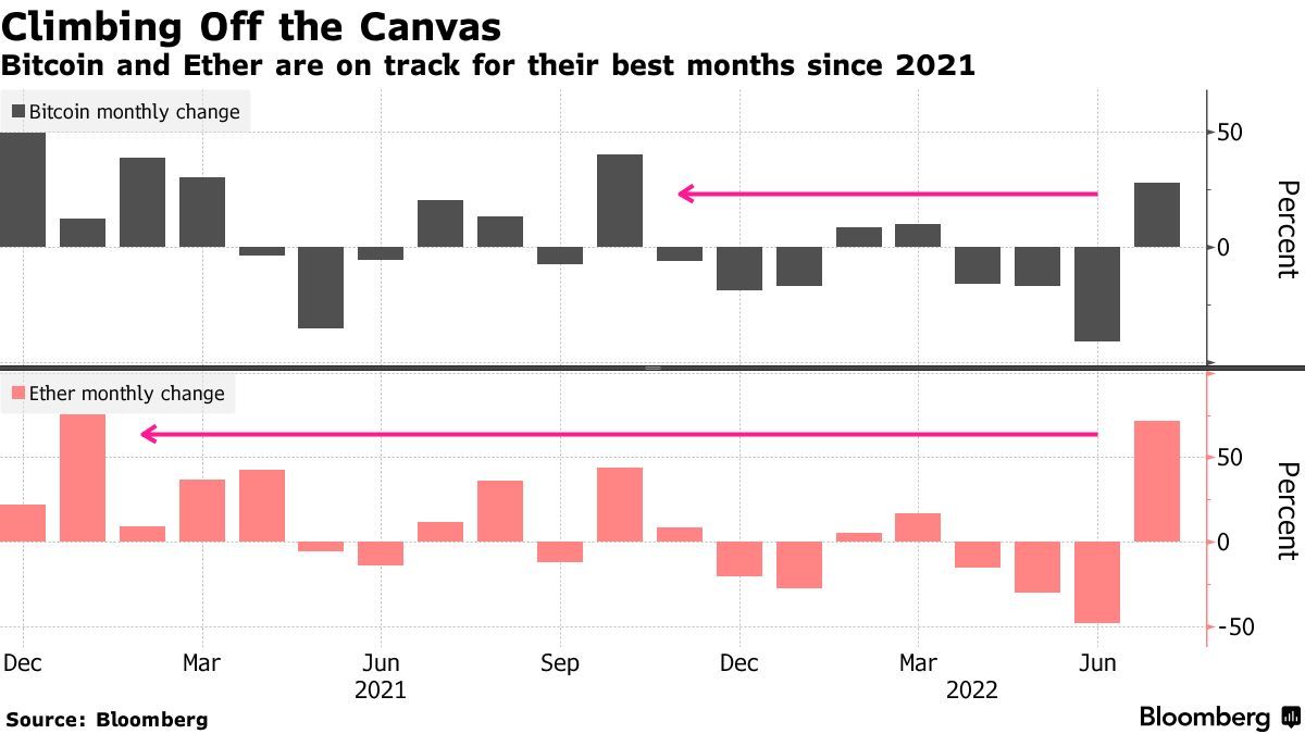 随着全球市场风险偏好持续复苏和市场对以太坊网络升级的乐观情绪,7月份或将成世界上最大规模的两种数字货币——比特币和以太坊自2021年以来表现最佳的月份。