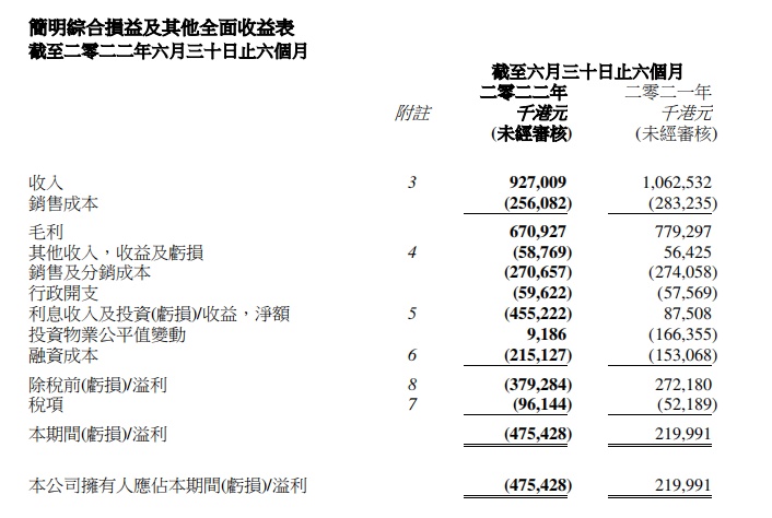 7月28日,利福国际发布2022年中期业绩:期内公司实现收入9.27亿元(单位:港元,下同),同比下降12.8%。毛利6.71亿元,同比下降13.9%。公司拥有人应占亏损4.75亿元,同比由盈转亏。