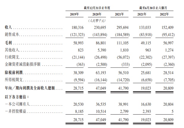 财务方面,截至2021年12月31日止三个年度以及2021年及2022年6月30日止六个月,公司的净利润分别约人民币2871.5万元、人民币4704.9万元、人民币4179.0万元、人民币1902.3万元及人民币2080.9万元。
