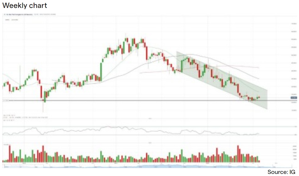 目前该股的空头势头看起来可能会保持不变,因为相对强弱指数(RSI)暗示将出现一个次高点(lower high),从而使整体趋势继续维持下行。