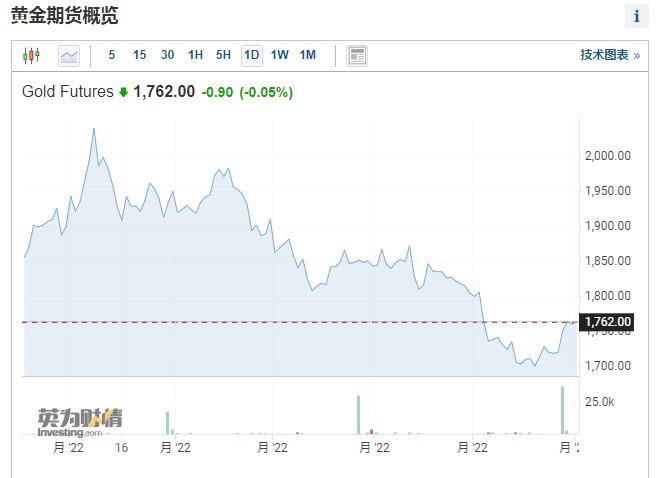 智通财经APP获悉,因市场猜测美联储将随着美国经济放缓而减慢加息步伐,上周黄金价格上涨2.2%,创下3月以来最大单周涨幅。不过金价在7月结束时连续第四个月下跌,表现逊于同为避险资产的美元。市场正在等待关于全球经济状况和美国加息步伐的最新动向,目前金价微跌但仍处于稳定状态。截至发稿,黄金期货下跌0.05%,报1762美元。