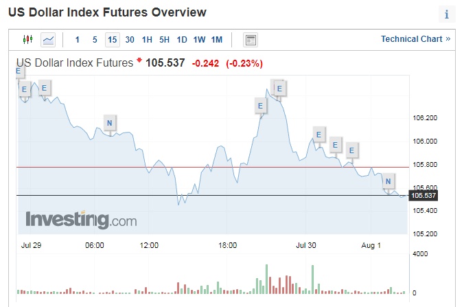 美元指数趋于稳定,截至发稿,美元指数下跌0.23%,报105.537。白银和铂金下跌,而钯金价格几乎没有变化。