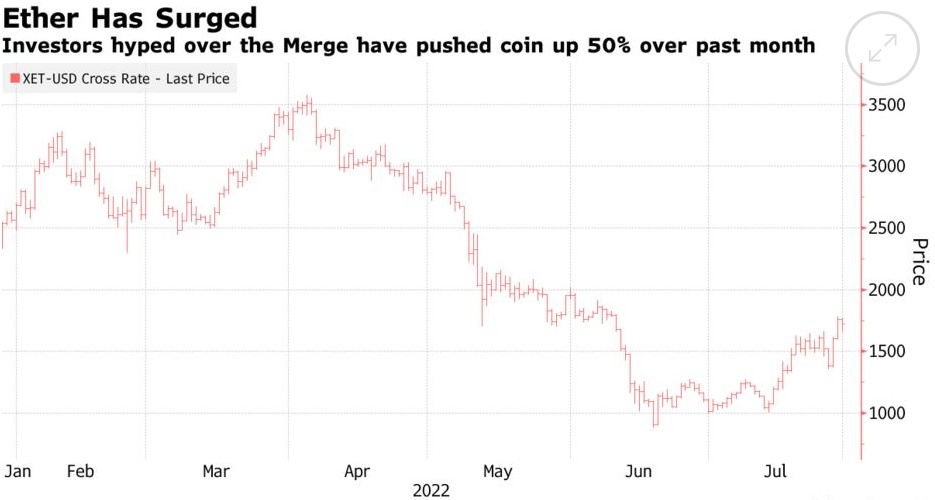 以太坊最近几周价格飙升,原因是人们对其期待已久的软件升级越来越乐观。该软件升级将推动从目前使用矿工的系统转向使用质押币的更节能系统。以太坊开发人员最近表示,在测试新系统方面继续取得进展,他们将在未来几周为潜在的利益相关者和其他社区成员举行一系列活动。