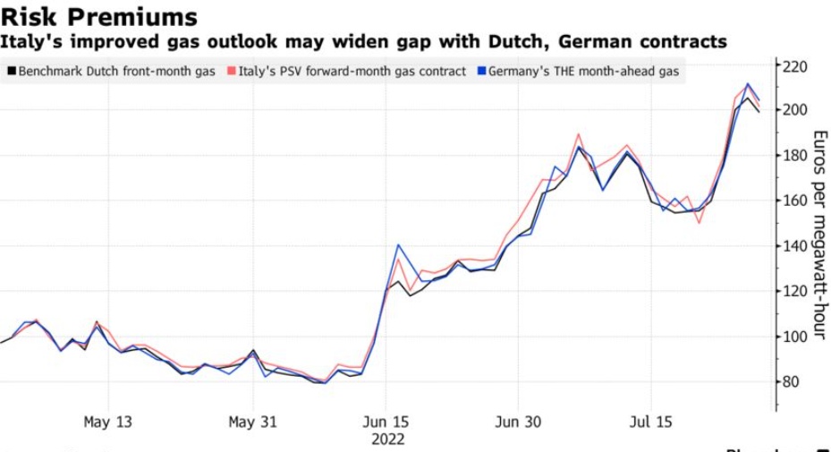 花旗分析师在一份报告中称,这一出人意料的举动可能显示出一种预期,或者至少是希望,这两种天然气合约的价格可以脱钩。意大利上个月天然气库存迅速增加,8月份可能会进一步向储存设备大量注入天然气,这可能会导致该国短暂的天然气供应过剩。他们写道,这将“极大地改善人们对意大利天然气冬季前景的看法,从而造成意大利天然气价格的波动”。