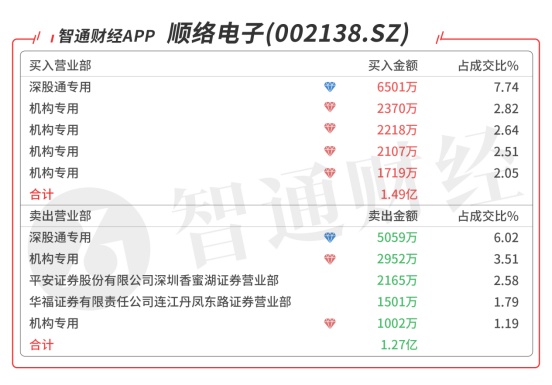 顺络电子(002138.SZ):受到众多机构青睐,今日共6家机构席位出现在龙虎榜单上,合计净买入5528万元,深股通大单对倒净买入1442万元,当日净买入4039万元,该股今日放量突破半年线,强势特征明显。