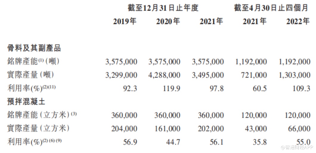 目前,淮北绿金高楼山项目(一期)产能已经无法满足公司业绩增长需求,截至2022年4月30日止四个月,公司骨料及其副产品的产能利用率高达109.3%。