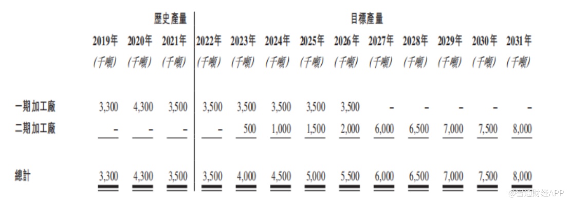 淮北绿金在招股书中称,公司于2021年6月30日,取得二期采矿许可证,该许可证将许可最大产量由每年3.5百万吨增加至每年8百万吨。为逐步实现公司骨料产量增长目标,淮北绿金董事计划于2023年第三季度末前完成新生产厂房(即二期加工厂)的建设并于2023年第三季度末前开始试产。根据独立技术报告,公司开发高楼山项目(二期)的估计总资本成本为约16.88亿元(不包括可持续)。