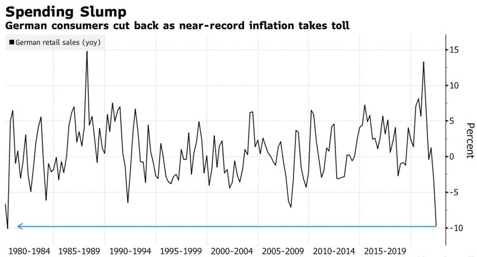 智通财经APP获悉,德国6月份零售销售额大幅下降,原因是消费者为应对创纪录的通胀削减了非必需品的支出。德国6月零售销售同比下降了9.8%,是1980年来的最大降幅,预期为下降8.3%。家具、家用电器、服装和鞋子等非食品商品的降幅更大。德国6月零售销售环比下降1.6%,预期为上升0.3%,前值0.6%。