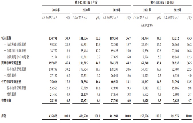 公司的城市服务包括:(i)市政基础设施服务;(ii)公建项目管理服务;及(iii)垃圾集运中心的运营。此外,公司还为公司所管理的商业物业(如工业园区及制造工厂、办公楼宇、公寓及商业综合体)及住宅小区提供基本物业管理及增值服务。