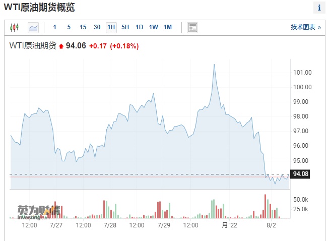据悉,由于全球制造业数据不佳,加剧了市场对经济放缓可能削弱原油需求的担忧,导致近日油价大幅波动。WTI原油期货周一盘中跌超6%,失守93美元。截至发稿,WTI原油上涨0.18%,报94.06美元。