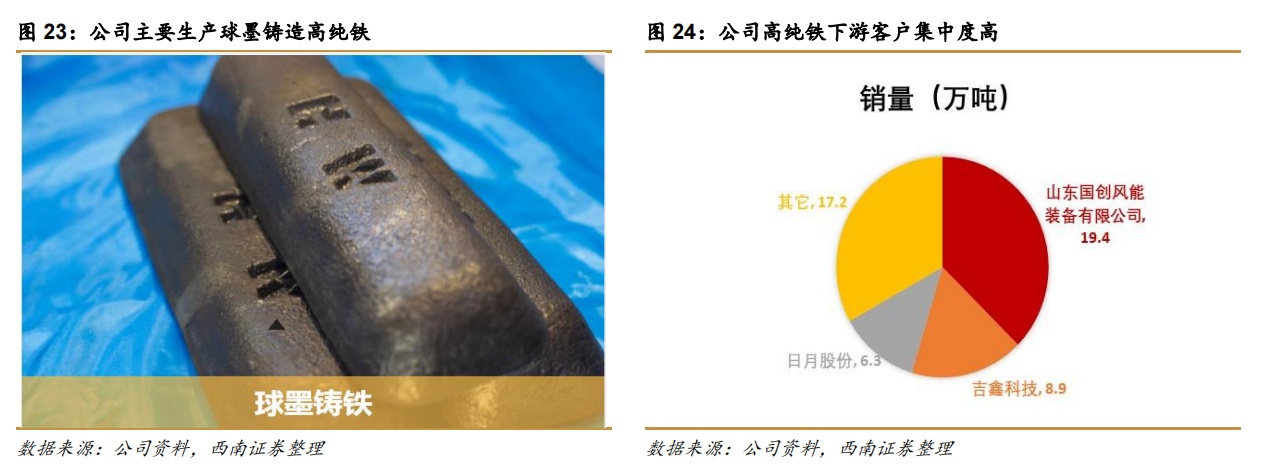 首先来看高纯铁业务带来的增长空间。据智通财经了解,中国罕王于2019年从控股股东China Hanking (BVI) Limited 处收购拓川资本100%股权之后,便正式将高纯铁业务纳入公司业务结构中。目前,该公司主要生产球墨铸造高纯铁这一产品,且主要应用于风电领域,至2021年末,公司高纯铁年产能93万吨,为中国市场风电球墨铸铁第一大供货商。