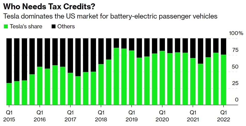 7500美元税收抵免是一件大事,尤其是对特斯拉、通用汽车和丰田来说。法案取消此前要求合格车辆必须配备纯电动电车的规定,以及每家制造商不得超过20万辆的上限。由于多家制造商超过了这一门槛,汽车制造商对这一上限感到不满。这三家公司都已销售了至少20万辆符合优惠条件的汽车。一旦制造商越过这个门槛,购车者的信用优惠额度就会开始减少,最终完全没有。福特汽车(F.US)和日产也在接近这一门槛。该法案若将通过将从明年开始重新提供全部优惠。