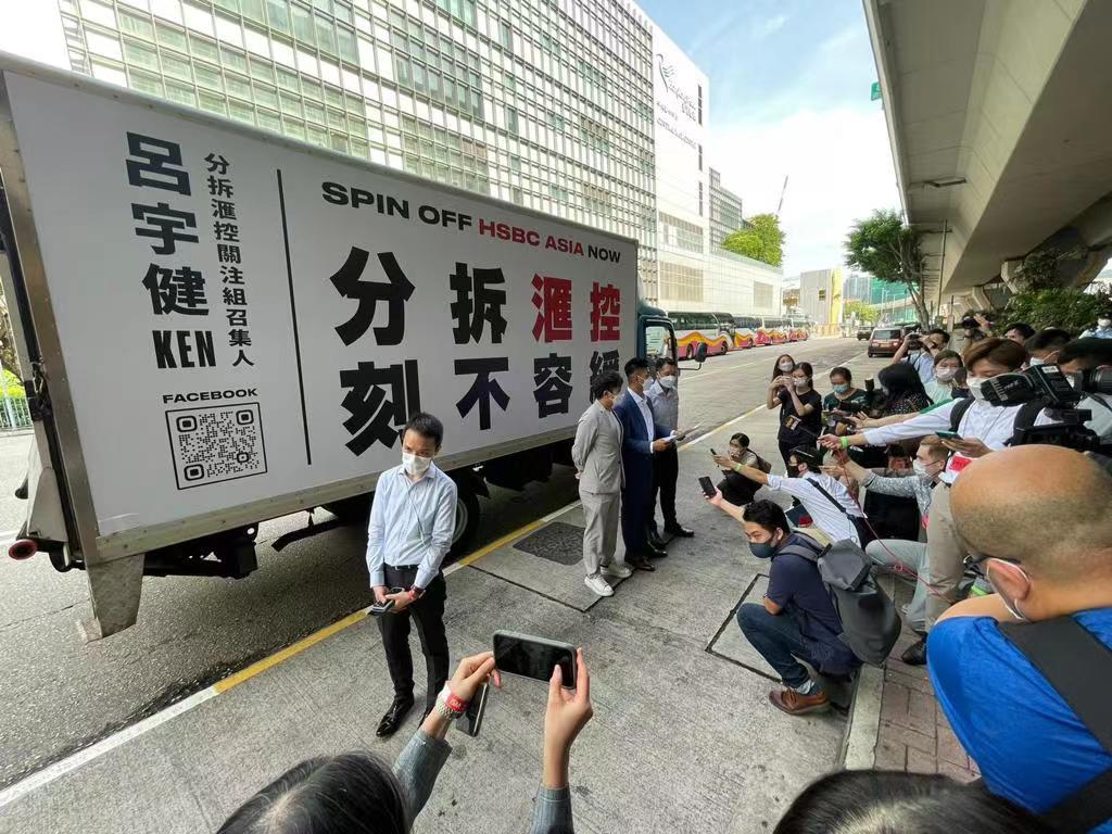 吕宇健是主张拆分汇丰控股的投资人之一,前述挂横幅表述诉求的小货车即是其租用,此前因汇丰控股暂停派息而于2020年发起了“汇丰小股东权益大联盟”,并在社交平台上创办“分拆汇控关注组”。