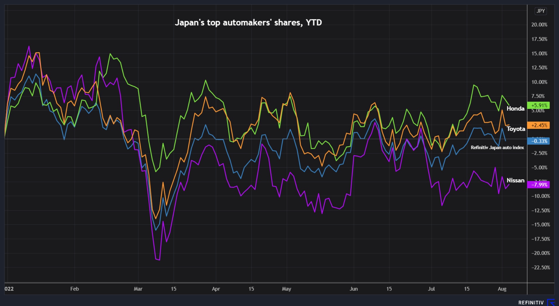丰田及其主要日本竞争对手日产和本田也在努力应对长期挑战,包括汽车电气化和自动化。
