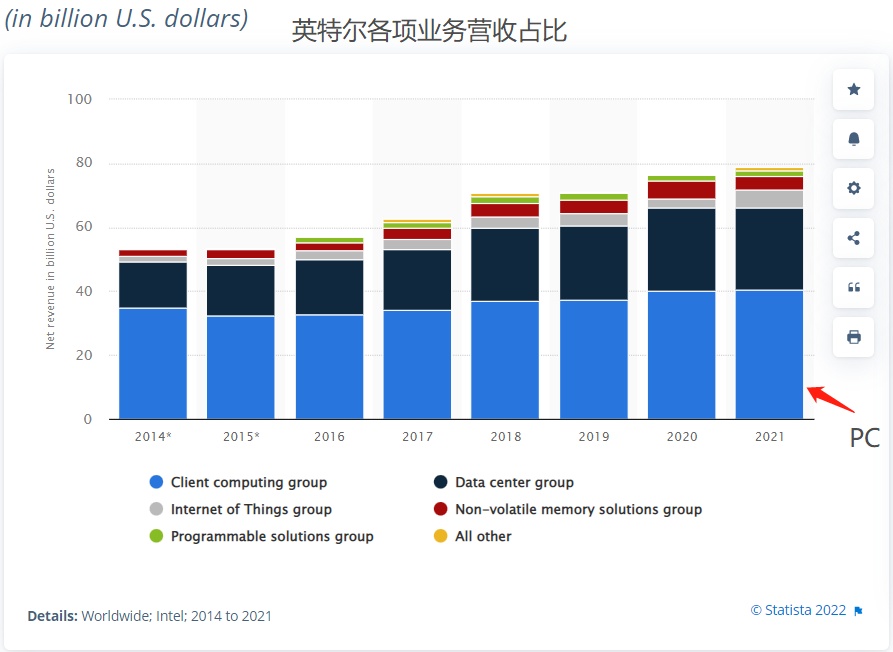 英特尔与AMD最新公布的业绩指引不及预期反应出的是新冠疫情以来如日中天PC市场未来将趋于疲软,这一逻辑同样适用于手机CPU市场,但标的则换成了高通(QCOM.US)。早在7月初,存储芯片巨头美光科技(MU.US)公布最新财报时,市场已窥见PC市场未来需求将愈发严峻的端倪:不同于2021年PC销量的强劲增长,美光管理层预计2022年PC销量将同比下降10%。同时美光预计下游转变为结构性需求增长,PC和移动端市场需求预期下滑,图形/ 5G/汽车/工业市场依旧保持强劲增长。