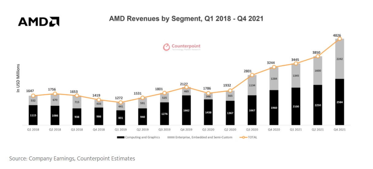 这一预测与英特尔和AMD较弱的业绩指引相呼应,从两者主营业务来看,PC业务毫无疑问占比最大,因此PC需求趋于疲软对于这两个CPU产业巨头来说无疑将一大“噩耗”。在这样的大环境下企业给出的业绩指引自然很难符合市场预期。以上这一逻辑同样适用于依赖PC端需求的GPU产业链。