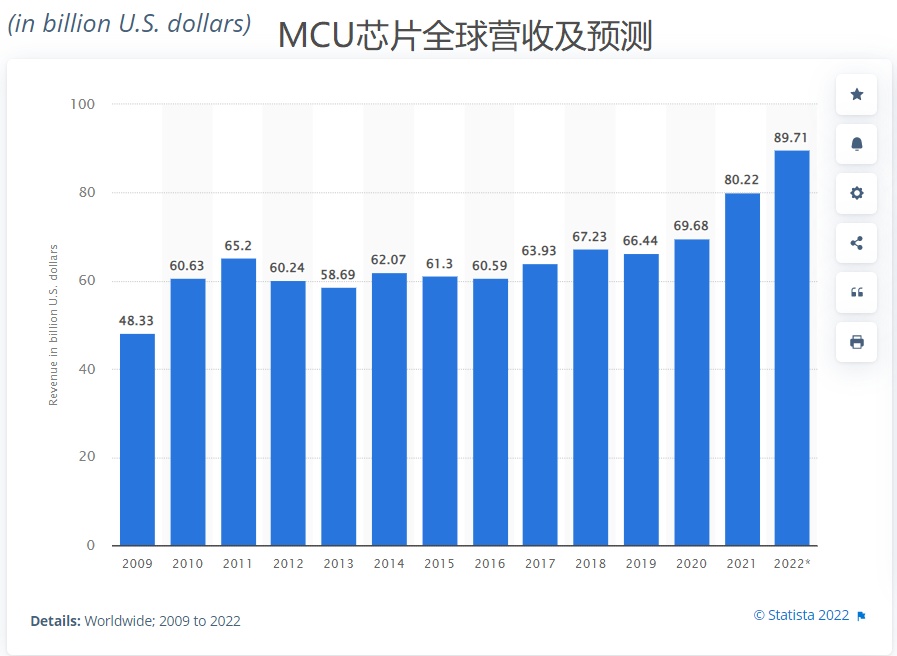通胀率高企,叠加全球各大央行激进加息背景下市场对于消费电子的需求正趋于疲软,MCU需求却愈发强劲。从应用场景来看,MCU一般应用于家电,工业控制系统、电动汽车智能化、医疗产品等多个场景,这些场景对计算性能的要求远不及CPU,但同时更多要求高稳定性和可靠性。