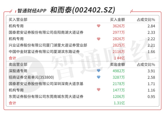 和而泰(002402.SZ):机构主导,游资分歧,今日共3家机构席位出现在龙虎榜单上,合计净买入4976万元,深股通对倒卖出2964万元,当日净买入3683万元,该股如突破年线,则有望打开上升空间。
