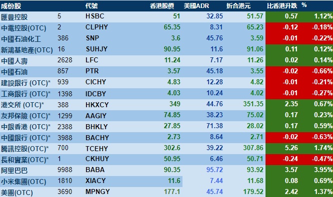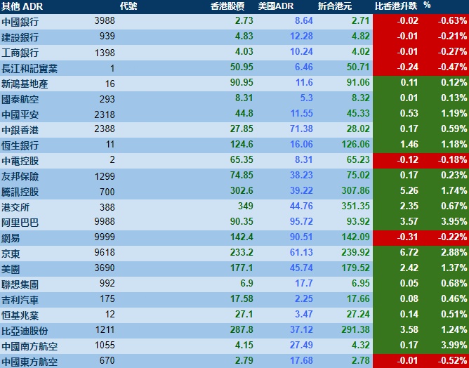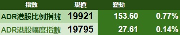 智通财经APP获悉,周三美股三大指数集体大涨,港股ADR指数上涨,按比例计算,收报19921点,较香港收市涨153.60点或0.77%。