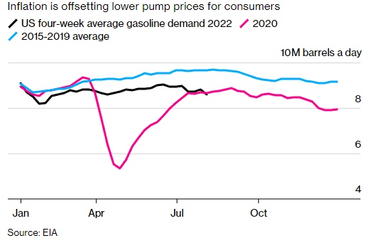 该数据也表明,上周出现的需求复苏迹象转瞬即逝。尽管汽油价格已连续50天下跌,但在历史性通胀限制消费者预算的情况下,还不足以吸引人们多开车。