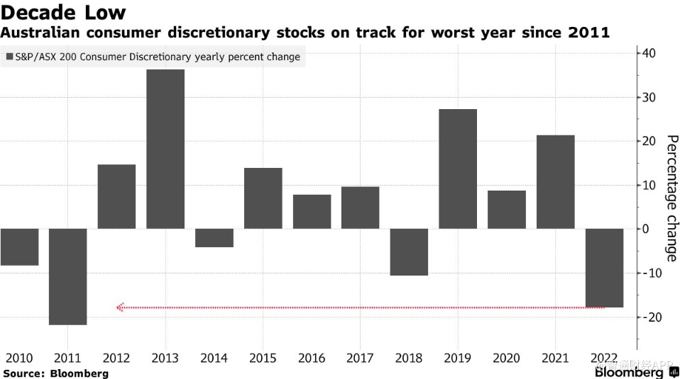 澳大利亚非必需消费品股或遭遇2011年以来最糟糕的一年