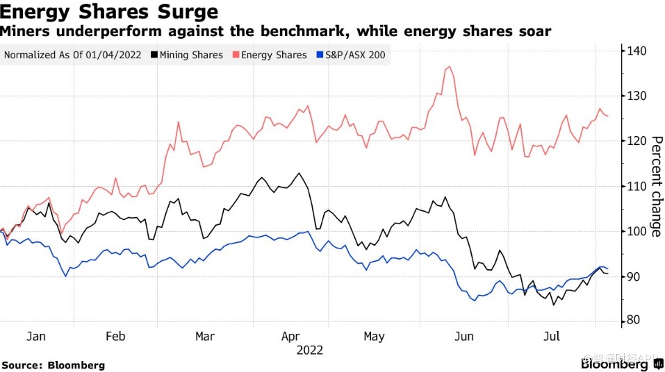 矿业股表现逊于基准指数,能源股则大幅上涨