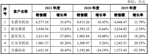 公司主营业务是沉淀法二氧化硅的研发、生产和销售,公司主要产品为沉淀法二氧化硅。公司生产的沉淀法二氧化硅作为补强剂主要应用于硅橡胶领域,下游可广泛应用于电子、电线电缆、绝缘子、汽车、日用品、医疗等领域。公司部分产品也可应用于其他领域,如绝热材料、PE蓄电池隔板、消光剂、消泡剂等。公司主要产品质量稳定、抗黄性好、透明度高,在国内硅橡胶用二氧化硅领域具有较高的品牌知名度。公司通过直销模式,并结合以销定产的方式组织生产,经过多年的经营,形成较强的市场竞争力。公司获得“工信部专精特新‘小巨人’企业”、“国家级制造业单项冠军”等多项荣誉。