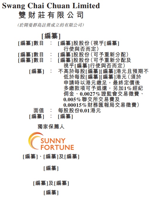 智通财经APP获悉,据港交所8月4日披露,双财庄有限公司更新聆讯后资料集,SUNNY FORTUNE为独家保荐人。