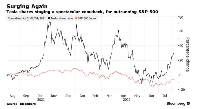而如今可以看到,自5月底以来,特斯拉股价也实现了大幅反弹。事实也证明,从该公司宣布拆股到投票表决这四个月期间,拆股计划在一定程度上推动了该股表现:成长股的反弹使纳指从6月低点上涨了近20%,特斯拉的表现则优于纳指和标普500指数,较5月底的低点上涨了将近50%。