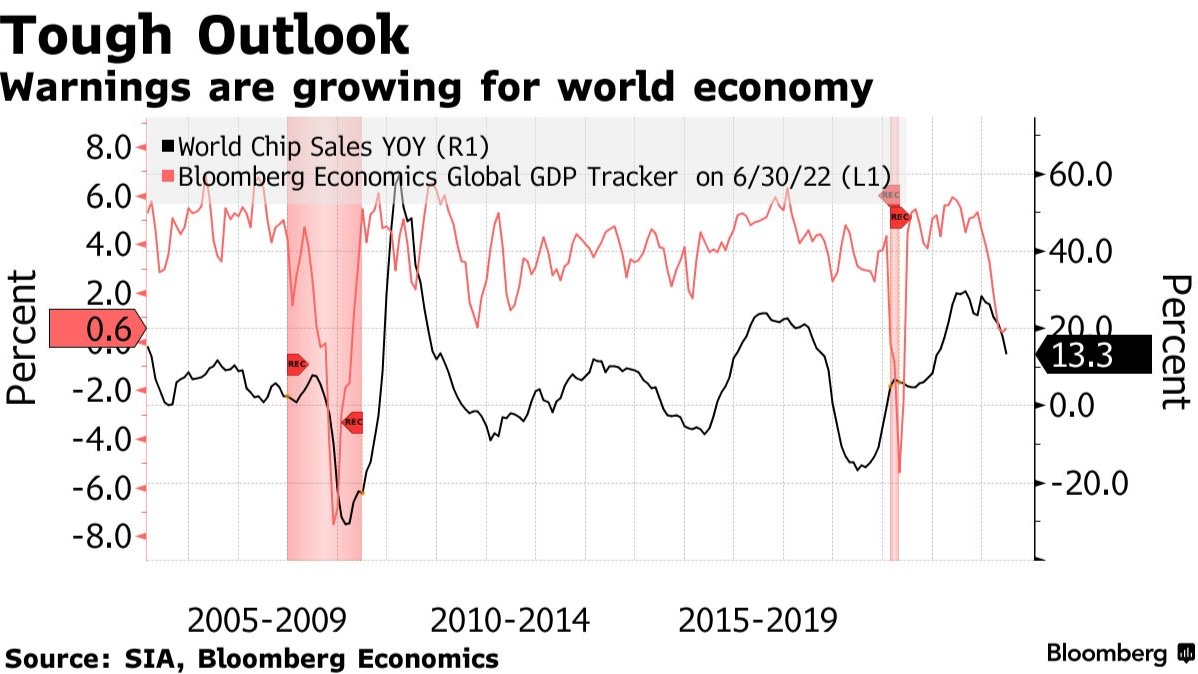 全球主要经济体增速放缓,甚至陷入技术性衰退,是导致半导体芯片需求大幅下降的重要原因。