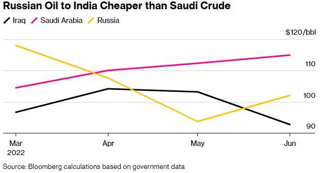 智通财经APP获悉,今年6月,俄罗斯已超越沙特成为印度第二大的原油供应国,仅次于伊拉克。据印度政府数据显示,在4月至6月期间,俄罗斯原油价格低于沙特原油,5月份这一价差扩大至每桶近19美元。