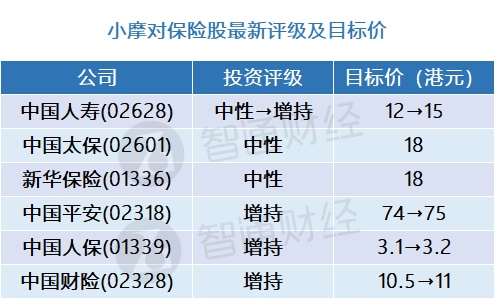 智通财经APP获悉,小摩发布研究报告称,中国平安(02318)和中国财险(02328)应有利于大部分来自业绩季节前后市场预期的积极变化。另将中国人寿(02628)评级上调,预计在盈利预测充分下调的情况下,寿险销售增长将超过预期。