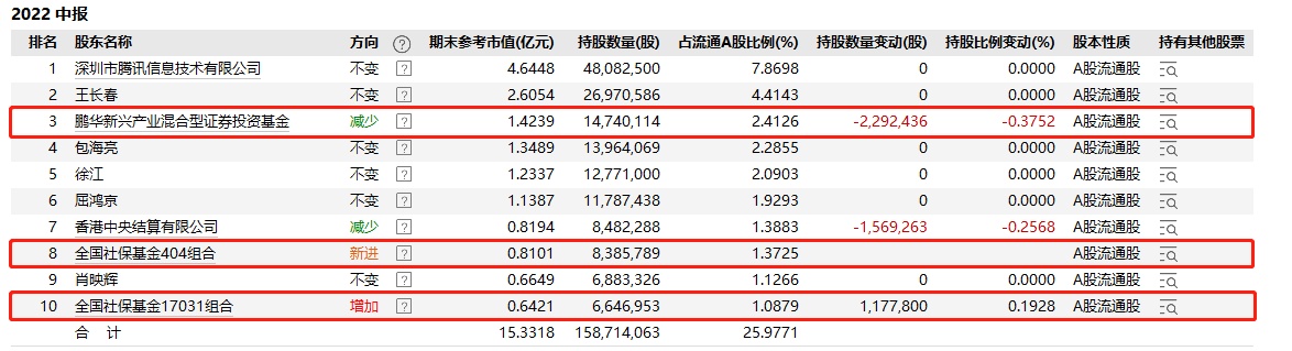 2022年一季度,404组合退出前十大流通股东席位,由于未披露,因此该基金是否增减持该股不得而知。17031组合降至第十。