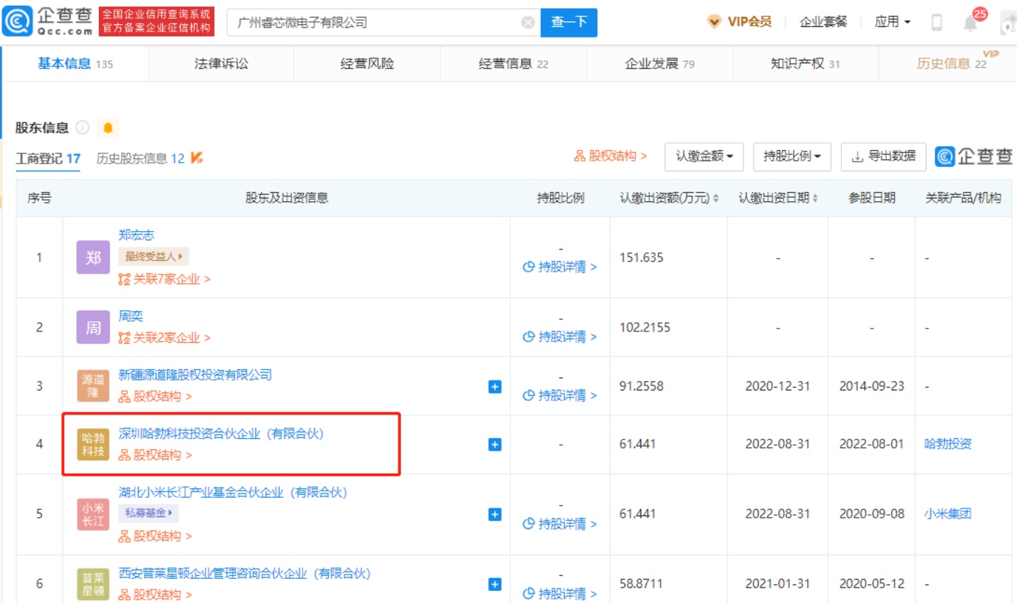 智通财经APP获悉,企查查APP显示,近日,广州睿芯微电子有限公司发生工商变更,新增华为关联公司深圳哈勃科技投资合伙企业(有限合伙)为股东,同时注册资本由约709万人民币增至约789万人民币。