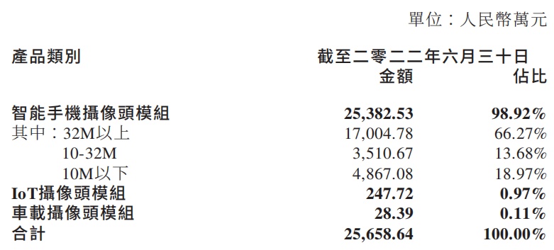 另外,从昆山丘钛中国的在手订单和已发出但尚未确认收入的产品结构来看,亦可窥见业绩回暖的迹象。截至7月15日,昆山丘钛中国摄像头模组产品在手订单(不含税)约为23.26亿元,较去年6月30日的在手订单金额提升约1191.96万元;截至6月30日,昆山丘钛中国已发出但尚未确认收入的产品中,32M以上及高端应用摄像头模组(包括IoT、车载摄像头模组)的金额占摄像头模组销售金额的比例约为67.35%,而2021年全年该类产品的占比为64.74%。