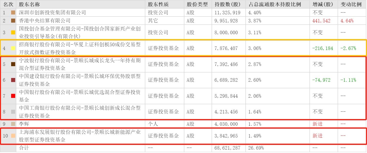 杨锐文在管的五只基金上榜睿创微纳前十大流通股东席位。其中,景顺长城环保优势减持该股74,972股,变动比例为-1.11%,减持后持股数为668.93万股,占总流通股本持股比例2.6%,位列第六。而景顺长城新能源产业则新晋该股前十大流通股东席位,持股数为384.3万股,占总流通股本持股比例的1.49%,位列第十。另外三只基金持股数未发生变化。