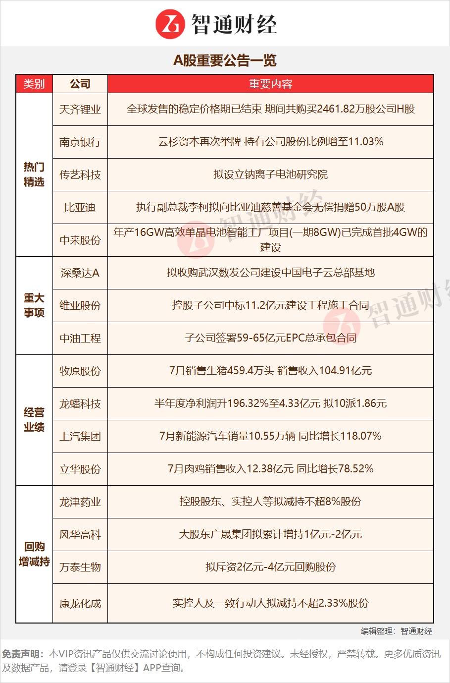 【免责声明】本VIP资讯产品仅供交流讨论使用,不构成任何投资建议。未经授权,严禁转载。更多优质资讯及数据产品,请登录【智通财经】APP查询。