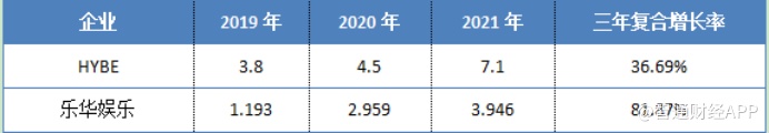 乐华娱乐与HYBE三年营收比较(单位:亿元)