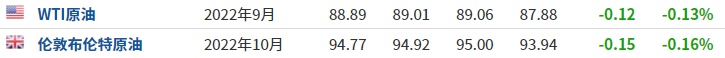 截至发稿,WTI原油期货价格跌0.13%,报88.89美元/桶,日内稍早前一度跌1.2%至87.97美元/桶;布伦特原油期货价格跌0.16%,报94.77美元/桶,日内稍早前一度跌1.1%至93.88美元/桶。