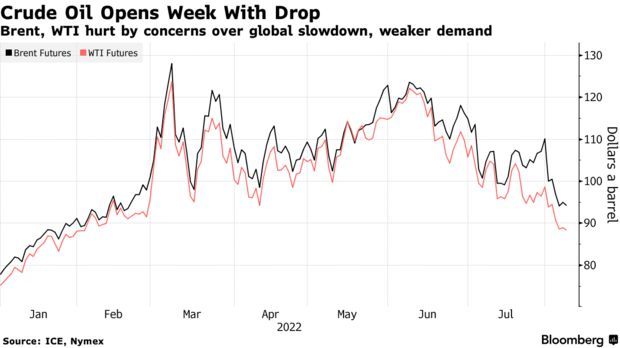 原油价格在2022年迄今为止经历了过山车式的波动。油价在俄乌冲突爆发后的头几个月飙升,但从6月开始随着市场对全球经济放缓的担忧加剧而下降;上周,由于美国疲软的汽油消费数据,WTI原油期货价格下跌了近10%。通胀上升已促使包括美联储在内的各大央行上调利率,投资者押注今年下半年还会有更多加息。